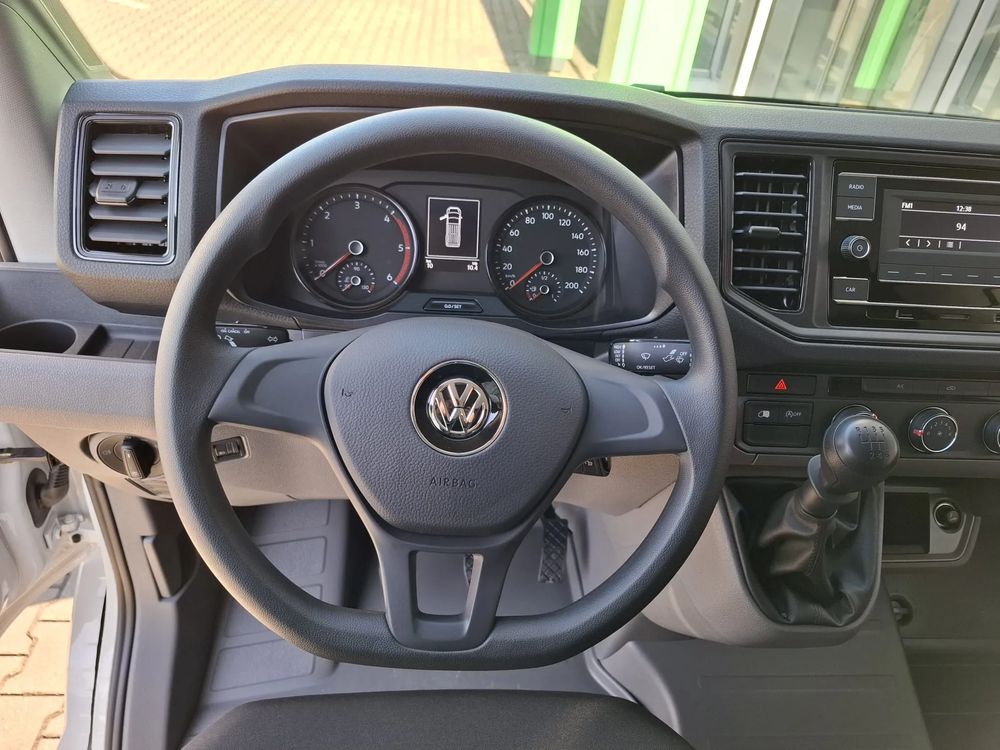 1 Inel tractare fata2 cale de blocare roata2 chei cu telecomandaAcoperire cauciuc podea cabina soferuluiAcoperis inaltat H3 vopsit in culoarea caroserieiAer conditionat in cabina soferului, cu reglare manualaAirbag soferAlternatorAnvelope 205/75 R16 C113/111, rezistenta optimizata la rulareAparatori noroi spateAsistent la vant lateral "Cross Wind Assist"Autovehicul comercial usor cu max. 3 locuriAvertizare sonora necuplare centura de siguranta sofer si insotitorAxa fata cu suspensie independenta tip McPhersonAxa fata ranforsata (sarcina 2.100 kg pe axa / sarcina 2.200 kg pe axa pentru roti jumelate)Axa spate rigida cu arcuri foi, longitudinale si tampon opritorBalamale cu unghi de deschidere marit la 270 grade pentru usile spateBandouri laterale de protectie (plastic)Bord cu componente speciale integrateCapac central roata (mic)Caroserie aerodinamica, coeficient aerodinamic imbunatatit pentru reducerea consumului de carburantCaroserie modulara autoportanta, din otel, galvanizata partialCenturi de siguranta automate, in trei puncte, reglabile vertical sipretensionare electrica pentru sofer si insotitorCod intern - control pachet tehnologieCod regiune " ECE " pentru radioCompartiment de manusi cu clapetaDiscuri frana fata 16" diametru 303 mmDisplay multifunctional "Plus"Doua usi in cabina soferuluiFaruri duble cu halogenGeamuri electrice fataGeamuri laterale si luneta cu protectieGuri de ventilatie mediane, laterale, la picioare si duze de dezghetare parbrizHill Start AssistIluminare LED in cabina soferuluiImobilizator electronic antifurtInchidere centralizata cu telecomanda, actionare din interior, fara SAFELOCKInele pentru ancorare marfaInstrumentar de bordIzolare fonica "Plus"Jante otel 5 1/2 J x 16"Lampa ceata spateLimitator viteza, max. 90 km/h (nu se poate dezactiva)Lumini de ziLumini laterale de pozitie (semnalizatoare laterale)Maner acces spatiu marfa amplasat pe peretele despartitorManere urcare stalpul A pe partea soferului si a insotitoruluiMasa maxima autorizata 5,0 toneMotor Start-Stop cu recuperare a energiei de franareNorma de poluare EU VI-eOglinda exterioara dreapta, cu unghi de vizibilitate marit si semnalizator LED integratOglinda exterioara stanga, cu unghi de vizibilitate marit si semnalizator LED integratOglinda interioara cu reglaj manual antiorbireOmologare ca autovehicul utilitar N2Pachet depozitare 2: Doua spatii depozitare 1-DIN deasupra parbrizului si lumini pentru cititPachet tehnologie pentru Crafter:- Sistem detectie oboseala- Volan multifunctional- Airbag-uri frontale pentru sofer si pasager, cu dezactivare pentru pasager- Front Assist cu functie de franare de urgenta- Senzori parcare fata si spate Park Distance Control- Sistem de mentinere a benzii de rulare Lane Assist- Lumini de zi automate cu functieParasolare pliabile si rabatabile lateralPerete despartitor fara geamPregatire "We Connect" si "We Connect Plus"Priza de 12 V (1 buc) si 4 suporturi pentru pahare in bordPrize de 12V (2 buc) in cabina soferului in panoul frontalProgram productie Romania- placuta constructor- literatura bord in limba romana Radio "Composition Colour"- 2 interfete USB Type-C amplasate in plansa de bord- touchscreen de 6,5"- 4 difuzoare- App-Connect- interfata telefon mobil- compartiment manusi iluminat, cu capac si sistem de inchidereRama sasiu intarita, cu lonjeroane sitraverse cu rezistenta la torsiuneReglaj electric faruriRezervor carburant (75 l)Roata de rezerva (otel), de dimensiune normalaServodirectie electromecanica incl. coloana de directie reglabila pe inaltime si adancimeSet scule si cricSistem anti-blocare roti (ABS)Sistem apelare de urgenta eCallSistem de control al tractiunii (ASR)Sistem electronic de stabilitate (ESP) inclusiv functie de asistenta la franare, sistem antiblocare (ABS), controlul tractiunii (ASR) cu diferential blocabil electronic (EDL) si functie semnalizare la franarea de urgentaSistem franare "Multi Collision Brake"Sistem franare hidraulic cu circuit dual si amplificator vacuum (design tandem 10")Spoturi in compartiment marfa (2buc)Structura ramei fata absorbatoare de energieTahograf smart (Smart TCO)Tapiterie textila "Austin"Usa culisanta dreapta in spatiul marfaUsi cabina soferUsi spate fara geam